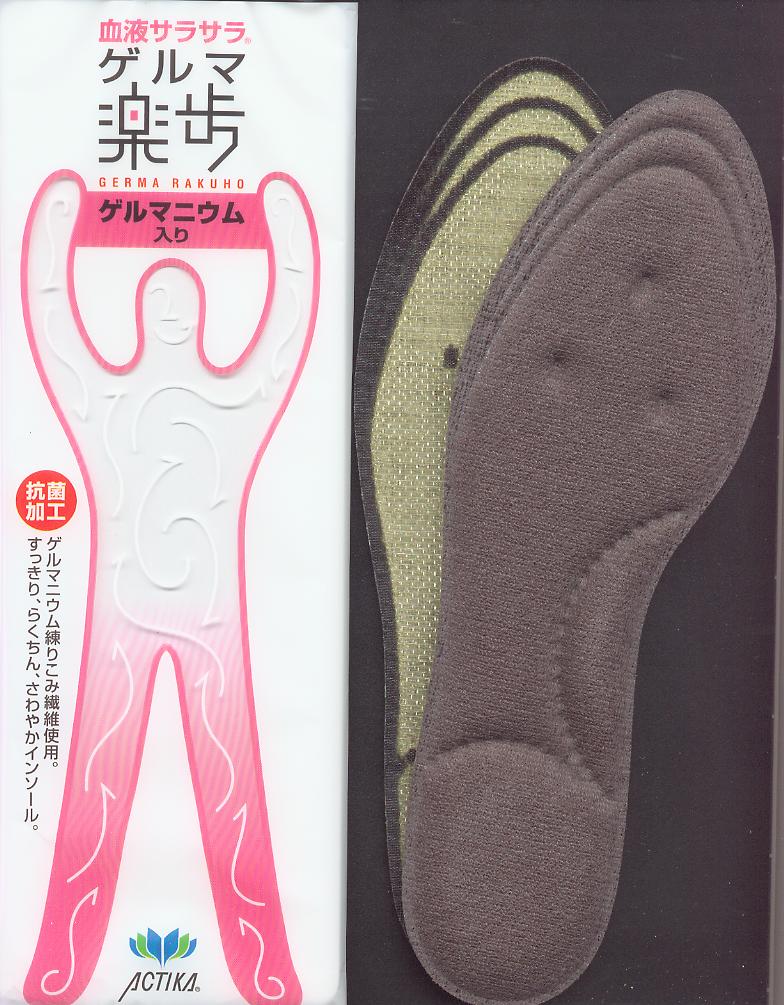 血液サラサラ ゲルマニウム入り 【靴の中敷き】ゲルマ楽歩インソール 【女性用22.0?24.5cm】 価格: 1,029円 レビュー評価: 0.0 レビュー数:0 ■血液サラサラ ゲルマニウム練りこみ繊維効果で スッキリ、楽チン、さわやかインソール ●ゲルマニウムとは? 亜金属であるゲルマニウムは、通常では電気を通さず、温度が上がると電気を通す半導体物質です。体温に反応しゲルマニウム原子核の外郭にある電子のうちの一つが元素から飛び出し、体の不快原因である異常電位を正常に戻すといわれています。 ●通気性・抗菌性に優れた力 通気性に優れたクレハロンを使用していますので、表面はドライなタッチが続きます。抗菌加工によって繊維状の菌の増殖が抑えられ、足もとはいつも清潔でさわやかです。 ●表面 ●裏面 ●衝 Supported by 楽天ウェブサービス |